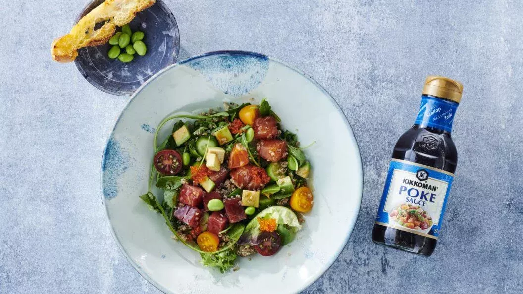 Kikkoman’s brand new Poke Sauce is an authentic combination of its famed naturally brewed soy sauce, toasted sesame oil, lemon juice and a little chilli. It’s a palate-pleasing blend of spicy, savoury and sweet and as well as being perfect for Poke Bowl recipes, it can be used as a table sauce, dip and dressing for salads and noodles. Try it with rich, creamy avocado for a real affinity of flavours.