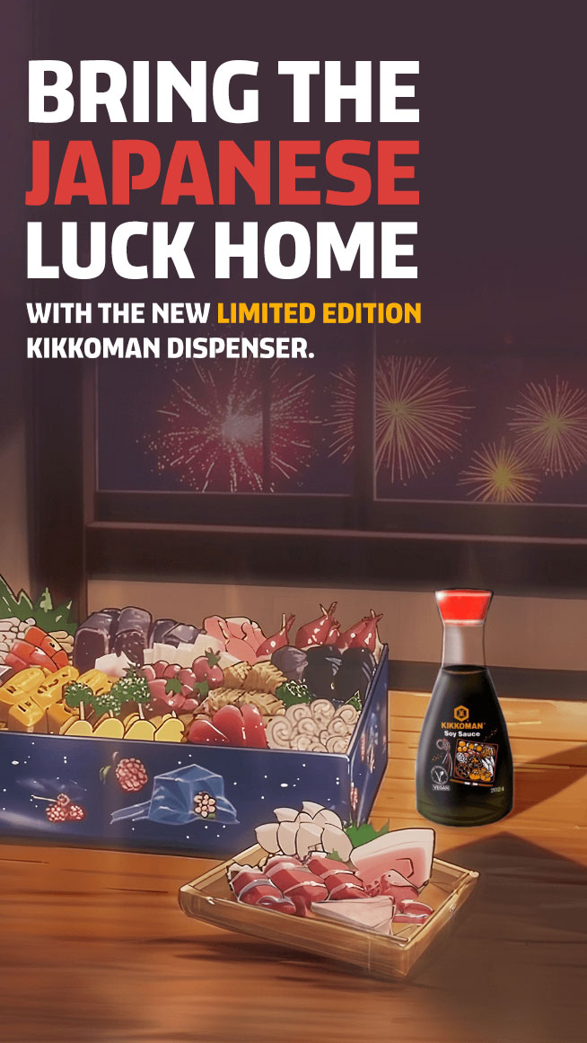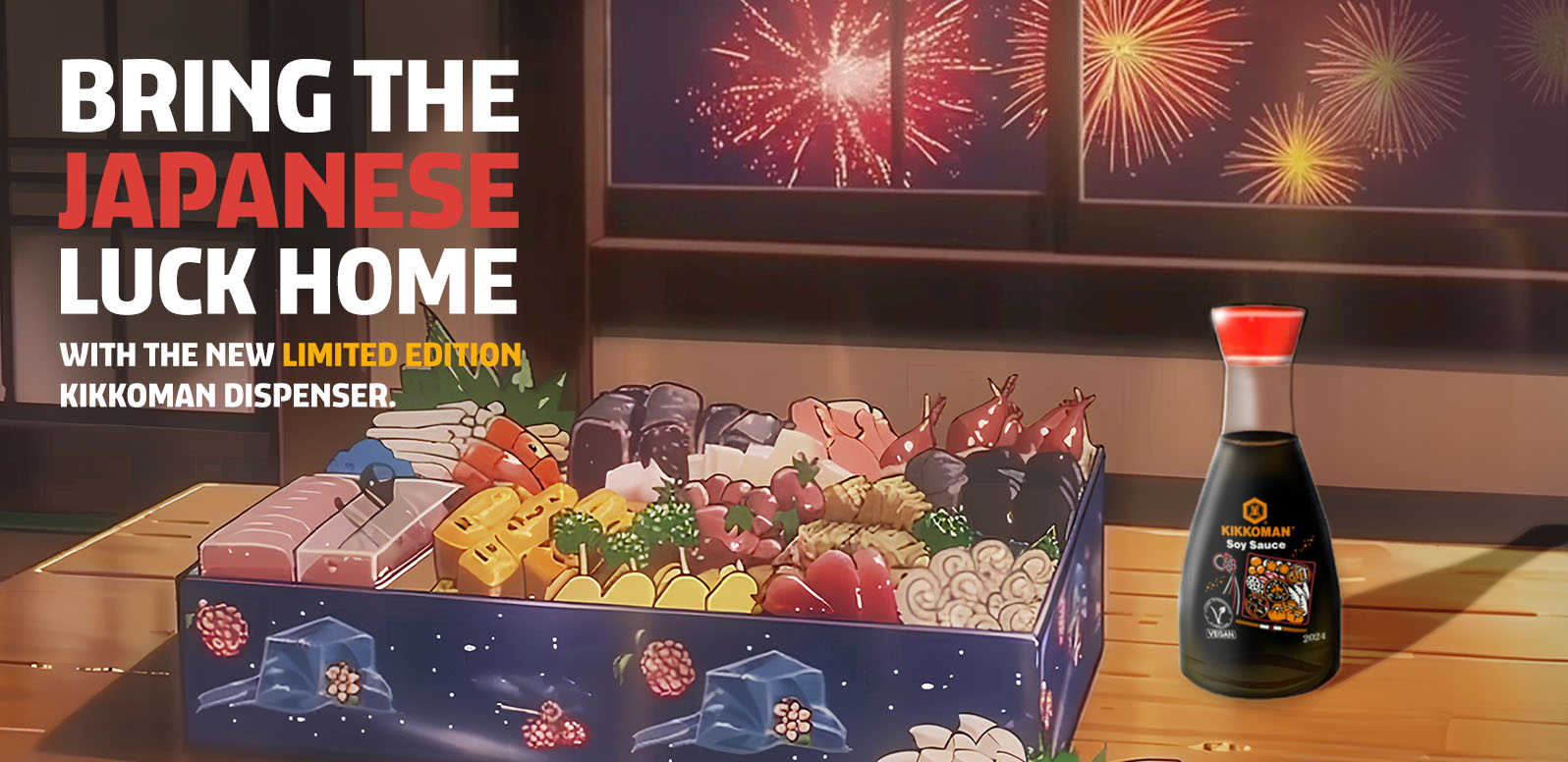 One such box, filled with osechi-ryōri, adorns the new Limited Edition dispenser from Kikkoman! Kikkoman Soy Sauce is also inextricably linked to Japanese history - adding delicious umami flavour to both Japanese and British festive dishes.