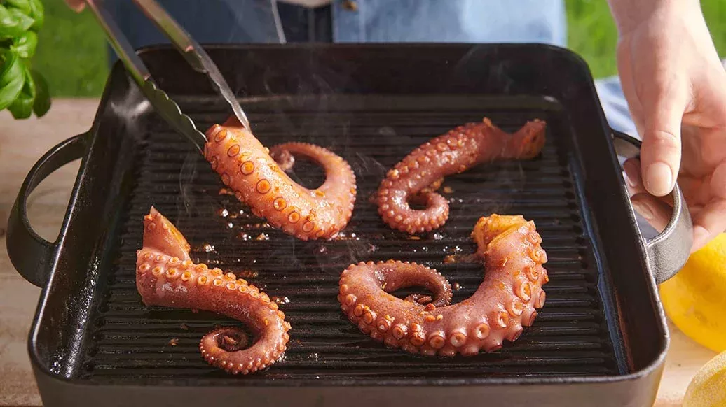 Tickle your taste buds with this light dish of grilled octopus. Accompanied by a refreshing, buttery ponzu sauce with a hint of citrus and capers for an extra burst of flavour, this simple but sophisticated dish is sure to make waves at your dinner table.