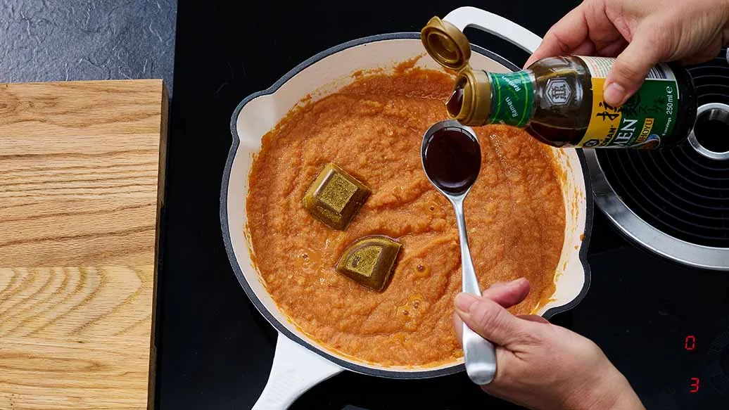 40 g Japanese curry roux – 1 tbsp Kikkoman Concentrated Ramen Noodle Soup Base - Shoyu (Soy Sauce) Flavour