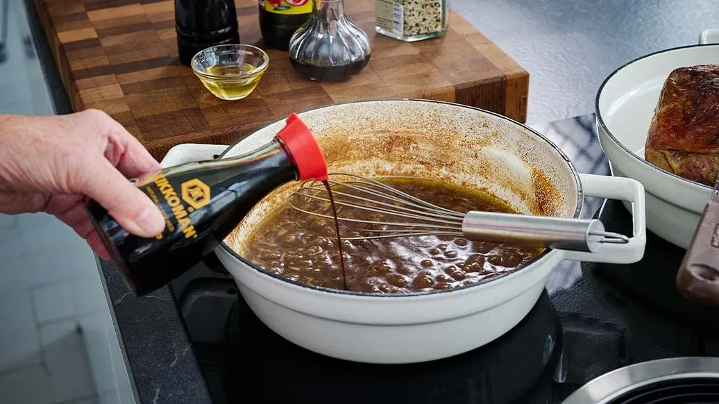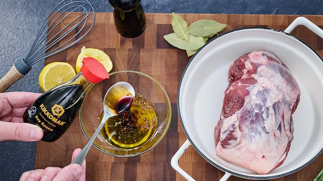A distinctive take on the Turkish classic Kuzu Tandir—slow-roasted lamb marinated with Kikkoman Soy Sauce, lemon and herbs for a rich umami glaze. Served with aromatic orzo pilaf and tender vegetables, it makes a comforting winter meal.