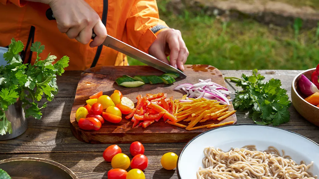 200 g soba noodles – 80 g carrot – 100 g cucumber – 100 g red pepper – ½ red onion