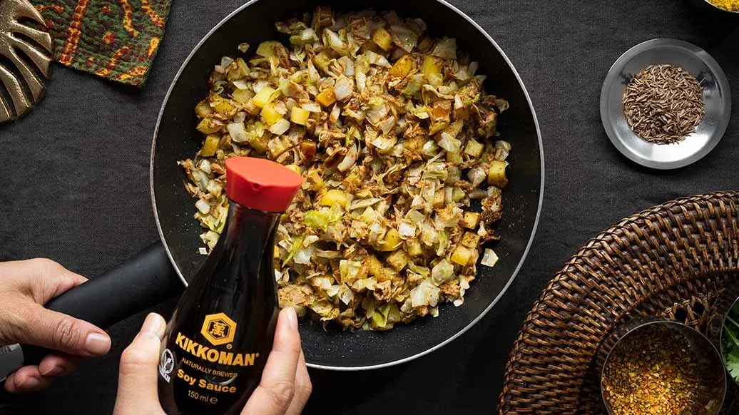 1 tsp cumin seeds – 1 tin of tuna (80 g) – 2 tbsp water – 2 tsp curry powder – 2 tsp garam masala – 2 tbsp Kikkoman Naturally Brewed Soy Sauce
