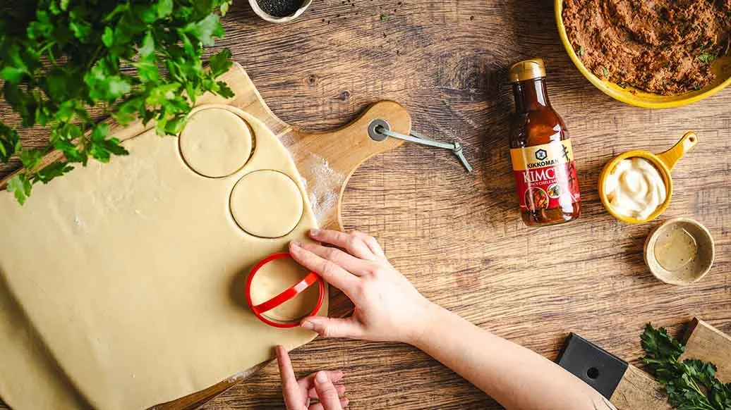 You can replace the Kikkoman Kimchi Chili Sauce in the filling with 1 tbsp of sriracha mixed with 1 tbsp of Kikkoman Soy Sauce. The dough can also be replaced with ready-made puff pastry.