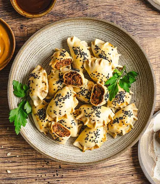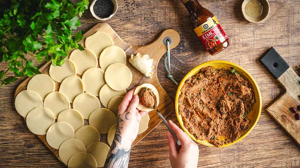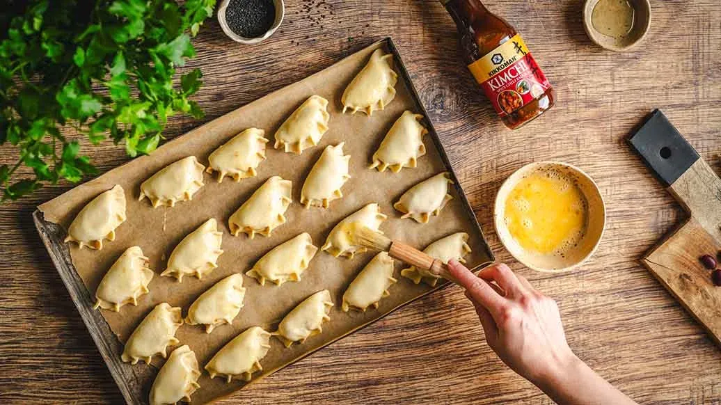 Crispy baked empanadas filled with a savoury mix of tuna, beans and sun-dried tomatoes. Kikkoman Kimchi Chili Sauce—used both in the filling and as a dip—adds gentle heat and extra depth.